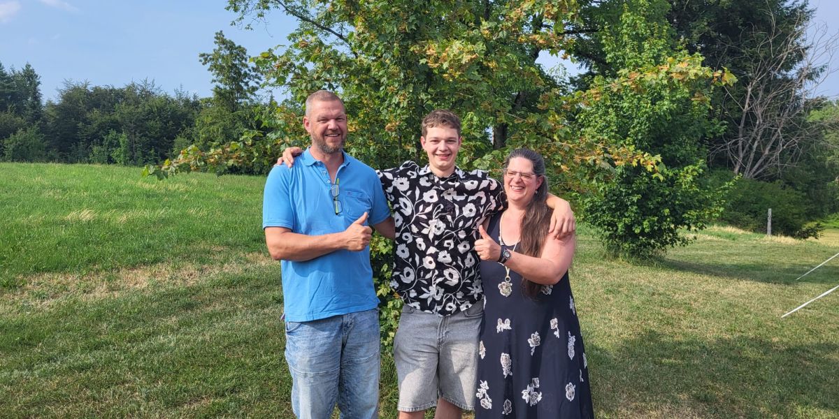 Tobia mit seinen zurecht stolzen Eltern an der Lehrabschlussfeier