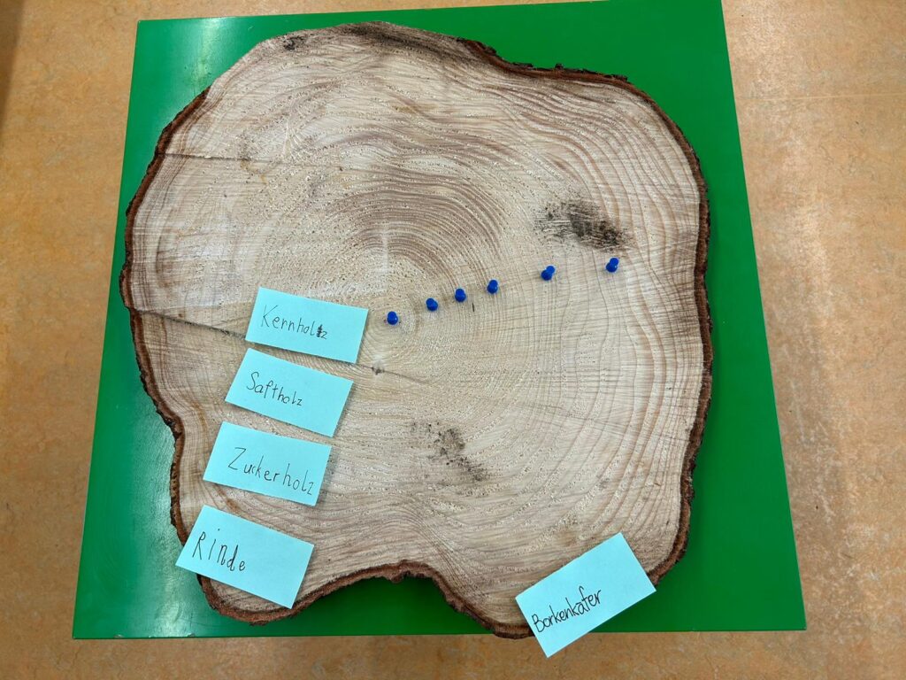 Anschliessend wurde klassenweise durch Zählen der Jahrringe das Alter des Baumes bestimmt.